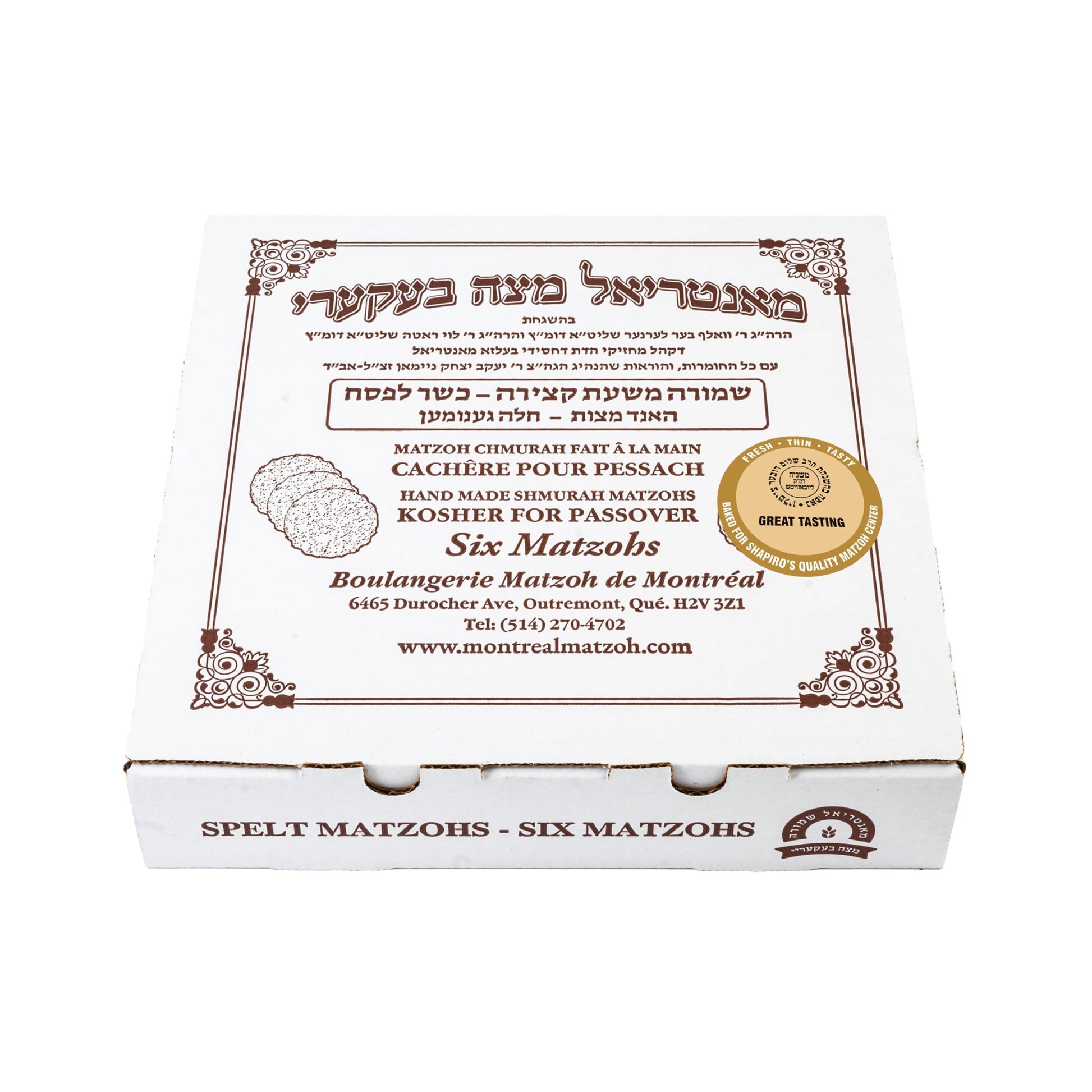 Best Tasting Organic Spelt Matzah (6 Matzah in a box)